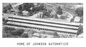 The foundry building in use for manufacturing the Johnson products. Although bearing the Johnson Automatics sign board this was still a Universal building. Mel. Johnson, being a lawyer was very concerned with how customers perceived his company, wanting it to seem like it had a huge manufacturing capacity when in fact he sub-contracted the work to others. The signs were added for the PR photographs.