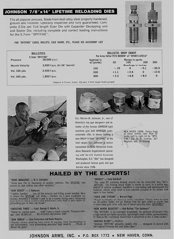 Copies from an original catalogue from Johnson Arms, describing the Johnson Spitfire rifle.